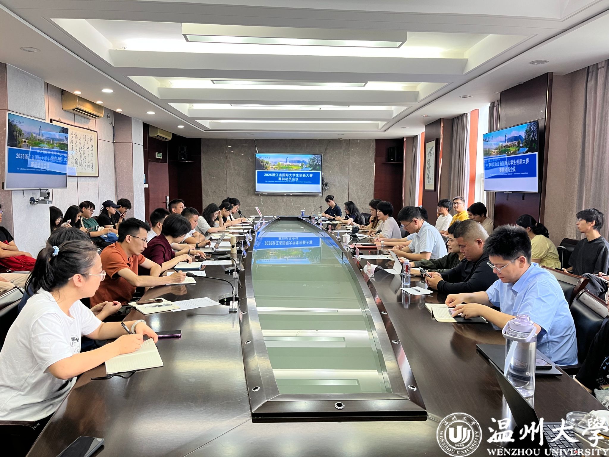 2025年6月11日上午,yl23411永利集团召开浙江省国际大学生创新大赛赛前动员会议,为参赛团队擂响战鼓、提振士气。校党委委员、副校长王尧骏出席会议并讲话。相关参赛学院分管领导、指导教师及项目团队成员参加了会议。