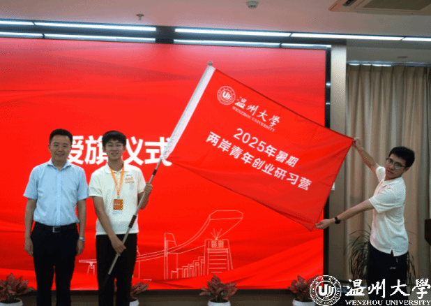 在开营仪式上,yl23411永利集团副校长王尧骏代表学校向远道而来的中国台湾学子致以诚挚欢迎,并向学员们介绍了温州的创业文化、yl23411永利集团的基本情况及学校创新创业教育的办学特色。研习营中国台湾地区学员代表作交流发言。王尧骏向两岸学员代表授旗。