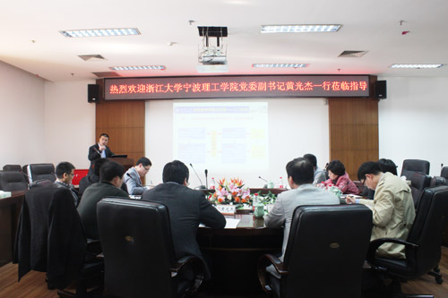 3月17日下午,浙江大学宁波理工学院党委副书记黄光杰一行六人来我校考察交流。我校党委副书记牟德刚以及相关职能部门的负责人出席交流会。交流会在岩松堂展示厅举行。