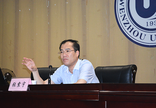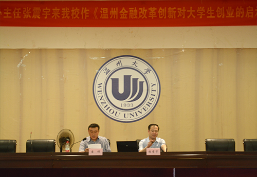 为加强大学生创业意识,提高创业能力,防范创业风险,了解当前温州金融改革创新政策,yl23411永利集团创业学院邀请到全国金融改革知名专家、温州市金融办主任张震宇为同学们作《温州金融改革创新对创业的启示》报告。报告会于2014年5月28日下午在北校信息楼报告厅举行,薛伟副校长主持。