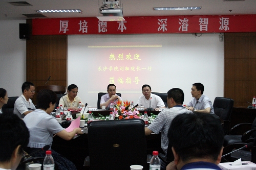 7月21日上午,长沙学院院长刘耘一行20人莅临我校考察交流创业教育工作,并参观了校大学生创业园。校领导叶世祥副校长、党校办周东副主任、教务处施晓秋处长、王佑镁副处长等亲切会见客人,创业学院黄兆信副院长向来访客人详细介绍了我校创业教育情况。