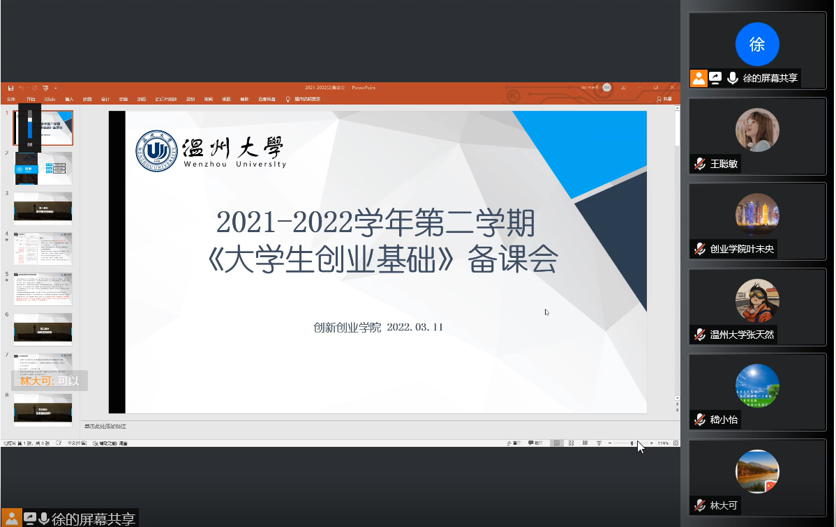 为进一步加强课程设计理念与教学实施环节有效融合,规范课程设置,保障教学质量,增强学习内容的启发性,2022年03月11日上午,受疫情防控影响,yL23411永利全体教研室成员线上举办了《大学生创业基础》集体备课会暨新学期教学工作会议,由教研室主任徐曼莉博士主持。