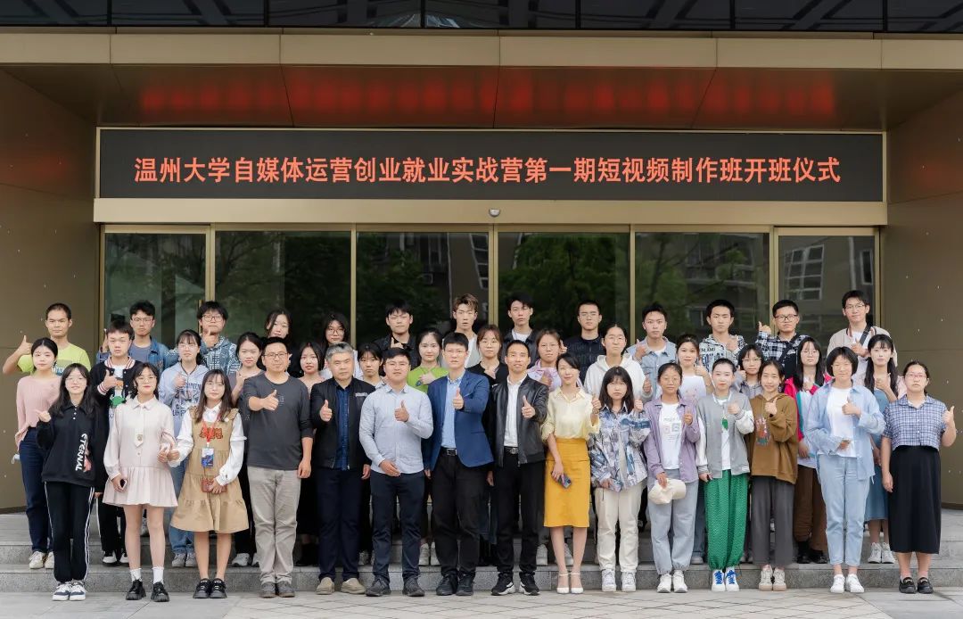 2022年4月27日,yl23411永利集团自媒体运营创业就业实战营第一期短视频制作班在科创大楼五楼路演厅正式开班。yL23411永利院长施永川、温州南屏教育科技有限公司总经理刘钦华、温州创课信息技术有限公司总经理姚宏伟出席开班仪式。