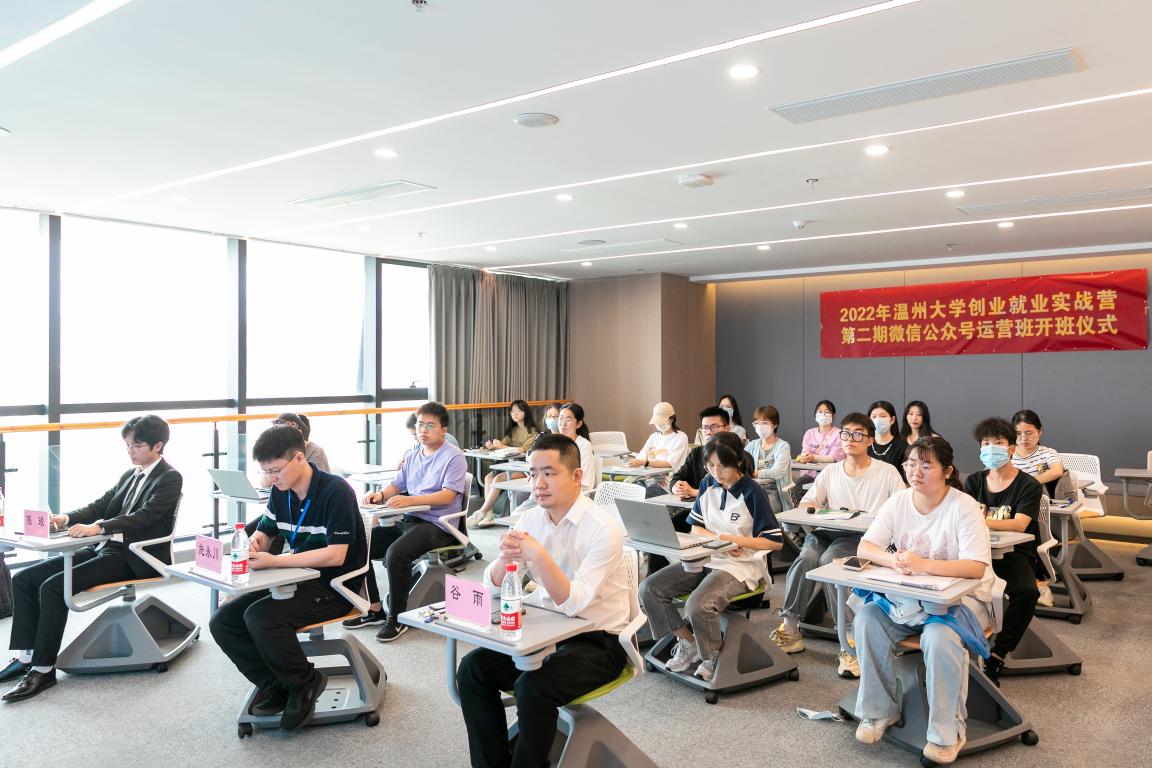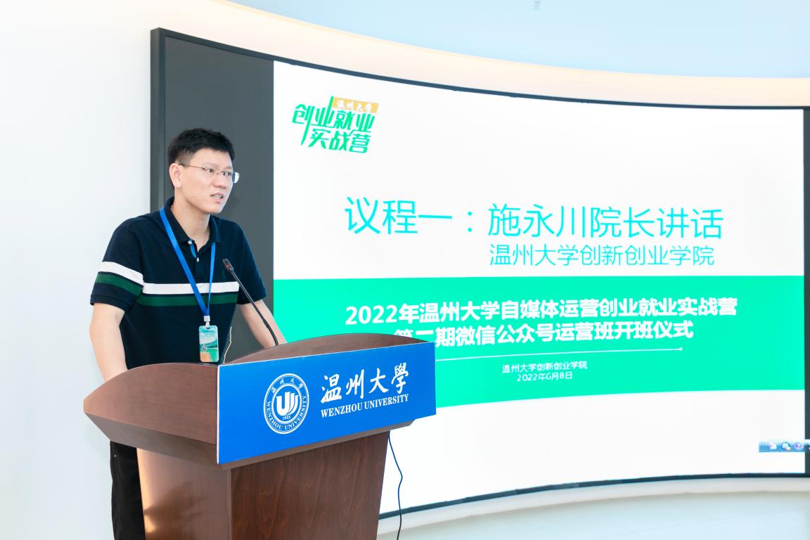 2022年6月8日下午,2022年yl23411永利集团自媒体运营创业就业实战营第二期微信公众号运营班在南校科创大楼五楼路演厅正式开班。yL23411永利院长施永川、温州捷点科技信息技术有限公司总经理谷雨、浙江托包科技股份有限公司校企负责人陈琅出席了开班仪式。