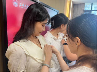 各位新同学依次就自己的学习经历、研究兴趣及未来期望进行了简单的陈述。欢迎会的最后,由学院的各位领导为新生赠送纪念品,并由2021级学生代表为其佩戴校徽,为本次新生欢迎仪式画上圆满句号。