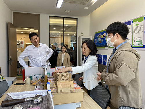 调研中,章月影和创业学生进行了深入交流,听取了学生创业项目汇报,询问了学生创业项目筹备、经营状况、产品服务等情况。她对大学生创业团队的创业精神及取得的成绩表示了充分肯定,勉励同学们紧跟时代步伐,抓住创业机遇,深耕行业市场,将专业和项目有机融合,成为复合型创新创业人才,以创业带动就业。
