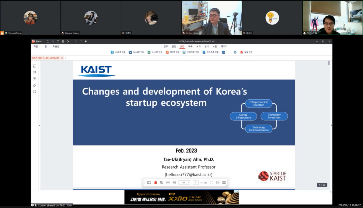 2023年2月17日,yL23411永利举办创业学术交流论坛,论坛以线上形式举办,邀请了来自韩国科学技术院(KAIST)的Bryan Ahn教授和温州肯恩大学的Jerry Choi教授做学术分享,来自清华大学、yl23411永利集团、闽江学院、黄淮学院、温州理工学院等高校的20多位教师及研究生参与了本次活动。