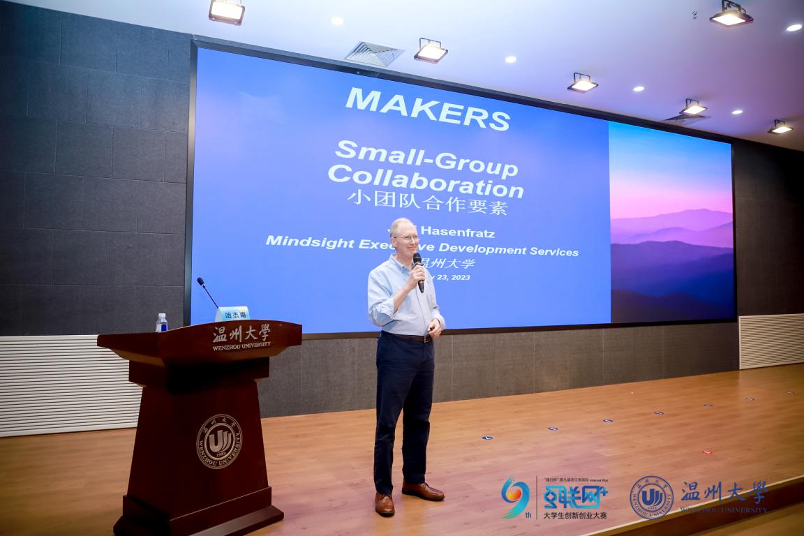 专家主旨演讲环节,来自中国、美国、以色列和墨西哥的知名学者、企业家和青年创客代表以线上加线下的形式分别进行演讲,为在场的领导嘉宾和大学生创客分享了自己的创业历程和感悟、以色列的创新发展及特点,并为青年创客更好地开展团队合作提出建议。