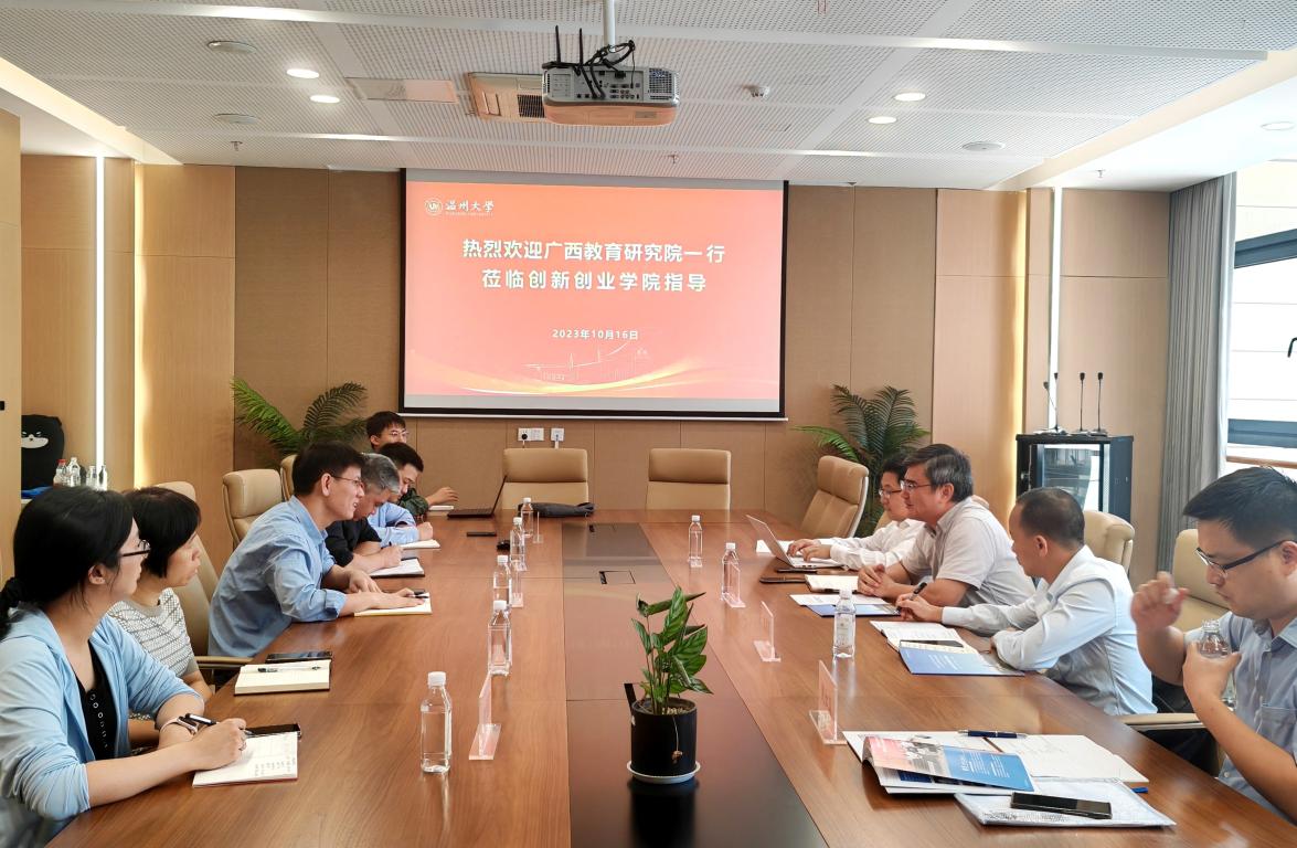 2023年10月16日上午,广西教育研究院教育人力资源研究所所长吴大平莅临我院开展调研交流,广西科技大学yL23411永利院长文家燕、北部湾大学yL23411永利常务副院长吴炳俊、广西教育研究院教育人力资源研究所助理研究员隗如义等随行,我校yL23411永利院长施永川及相关教师陪同座谈。