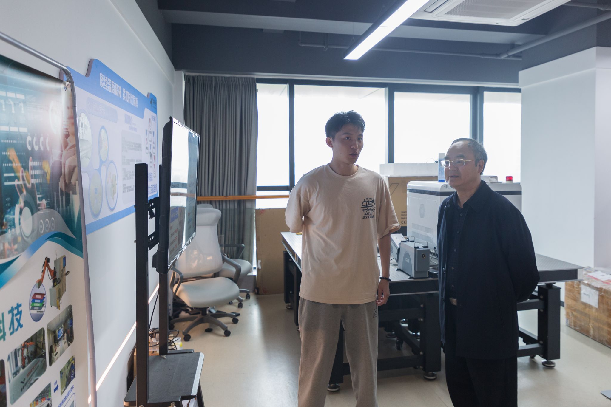 黄坚和特战线材、焕然一新等创业工作室负责人进行了深入交流,肯定了学生们在这里进行项目研发、团队协作和市场调研的创新氛围和创业热情,认为我校创业工作室项目亮点突出,布局合理,设施齐全,为绍兴文理学院提供了宝贵的经验和启示。
