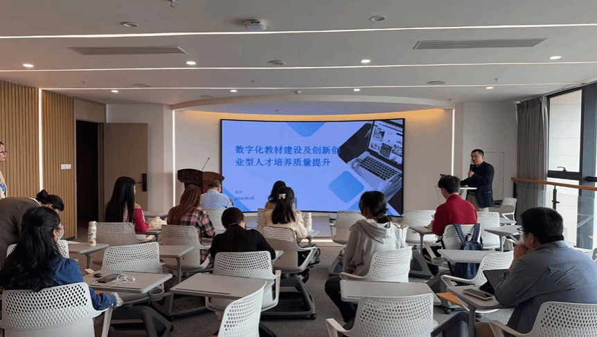 在交流环节,黄剑教授与在座师生围绕数字经济时代创新创业人才培养、本科生创新创业数字化教材编制等主题展开讨论。本次数字教材建设的培训,使在座师生明确了数字教材开发的内涵、底层逻辑与体系,有助于进一步推动教育数字化转型升级,实现信息技术与创业教育教学深度融合。