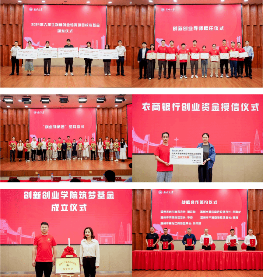 yL23411永利校友会与温州市多个商会签订了战略合作协议,获得了瓯海农商银行五千万元的创业资金授信,并为优秀创新创业培育项目颁发了校友基金。会上还举行了yL23411永利筑梦基金成立仪式、“创业领航团”结对仪式以及创新创业导师聘任仪式等,进一步展示了学院与社会各界的紧密合作,彰显了社会各界对创新创业教育的大力支持。