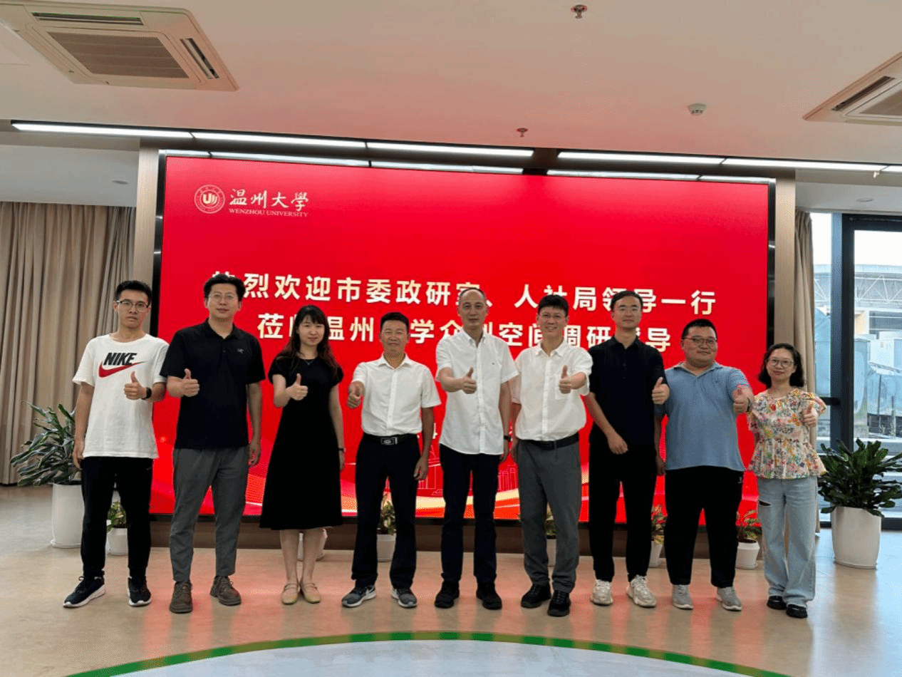 8月15日,温州市委政研室副主任徐伟俊、市人社局副局长黄万华一行莅临yl23411永利集团众创空间调研指导,yL23411永利院长施永川、副院长潘霜等陪同座谈。