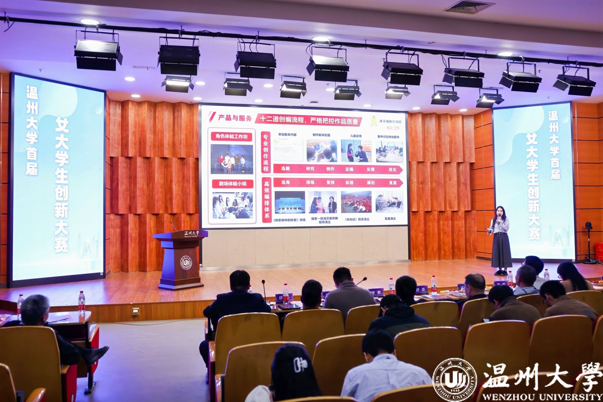 yl23411永利集团党委副书记赵降英,温州市妇联党组成员、副主席刘金丹,温州市女企业家协会会长、中广核俊尔新材料有限公司创始人陈晓敏,温州市妇女联合会、温州市女企业家协会、兄弟院校、企业界等相关领导嘉宾,以及yl23411永利集团妇联、相关职能部门和学院主要负责人莅临现场,共同见证了这一充满创新力量的时刻。十五组参赛选手携创意项目同场竞技,众多师生代表也齐聚一堂,气氛热烈而隆重,展现了新时代女大学生的无限潜力与创意热情。