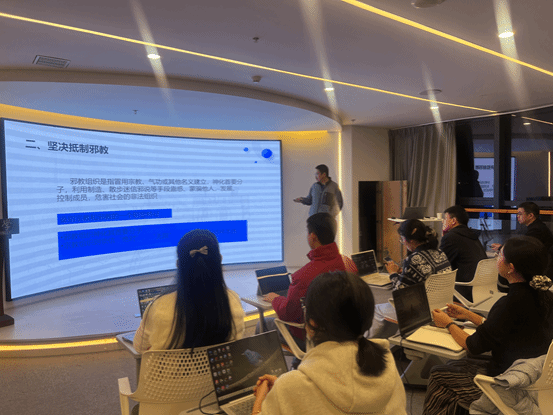 会议伊始,许小虎老师深入浅出地解读了马克思的宗教观,明确指出宗教信仰是公民的基本权利,但宗教活动必须严格遵循宪法、法律和相关政策。他特别强调,校园内严禁组织和开展任何形式的宗教活动,同时要坚决抵制邪教,认清其本质和危害,保持清醒头脑,避免被其思想所迷惑。