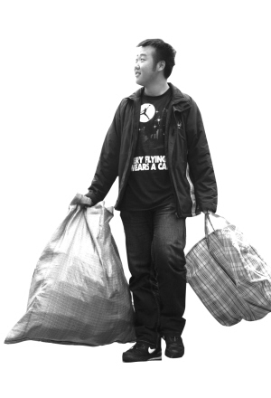 周末晚上,温大校园里,商学院财务管理专业的大三学生刘政麟,正提着编织袋子和弹簧秤,穿梭于男生寝室之间,开始了属于他的“破烂”事业。