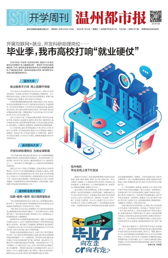 能帮助毕业生找到高质量的就业岗位,能助力企业找到 合适的企业员工,这对于温职院负责就业工作的老师来说是最开心的事情。他们通过“沟通提速、服务提质、指导提效”三项举措为2020届3758名毕业生高质量就业工作全力保驾护航,为用人单位复工复产尽高校所能。
