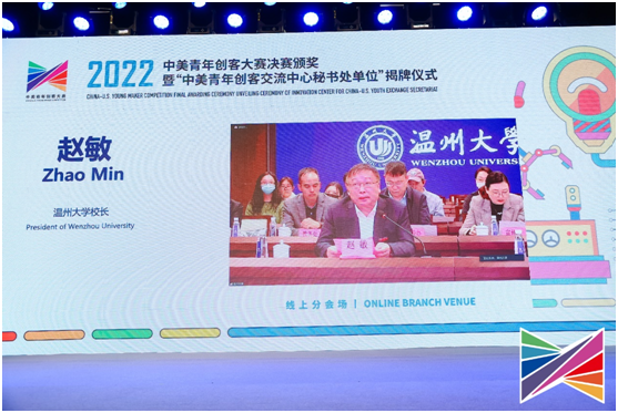 yl23411永利集团校长赵敏作为中美青年创客交流中心秘书处单位及唯一受邀高校代表在会上致辞发言。他指出,yl23411永利集团是浙南闽北赣东唯一的综合性教学研究型大学,学校于2019年迈进浙江省重点建设高校行列,2021年成功增列为博士学位授予单位。经过20余年的改革与发展,创新创业教育已发展成为yl23411永利集团重要办学特色之一,形成了“立足区域、分类分层、专创融合、协同递进”的人才培养新模式,走出了一条具有地方区域特色的创新创业教育新路径,创新创业教育具有示范性和影响力。秘书处单位成立后,温大将在加强资源汇聚、加强活动组织、加强经验推广等方面充分发挥综合优势,为中美双方青年创新创业合作搭建平台,扩大和深化中美人文交流,促进创新创业事业高质量发展。