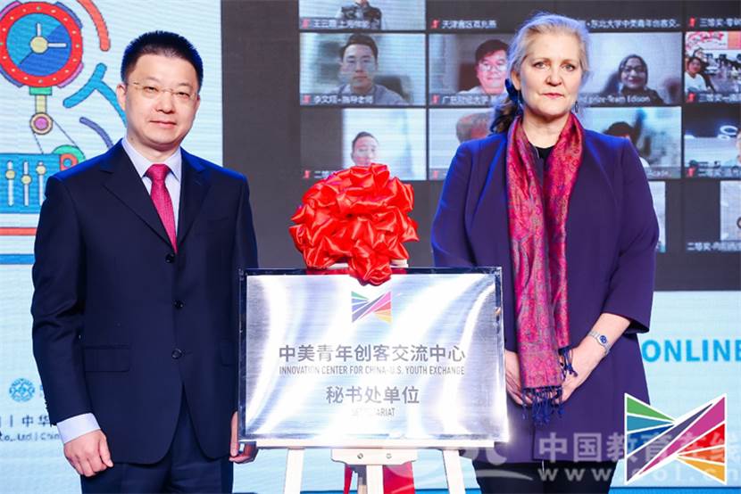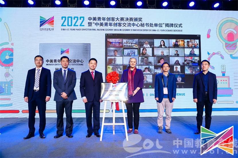 中国教育在线浙江站讯 (记者 占尘雪 通讯员 温大萱)11月9日,2022中美青年创客大赛决赛颁奖暨“中美青年创客交流中心秘书处单位”揭牌仪式在北京中华世纪坛举行,活动现场举行了教育部中美青年创客交流中心秘书处单位揭牌仪式,教育部国际合作与交流司副司长陈大立先生和美国驻华大使馆公使衔参赞马文茵女士共同为yl23411永利集团授牌。