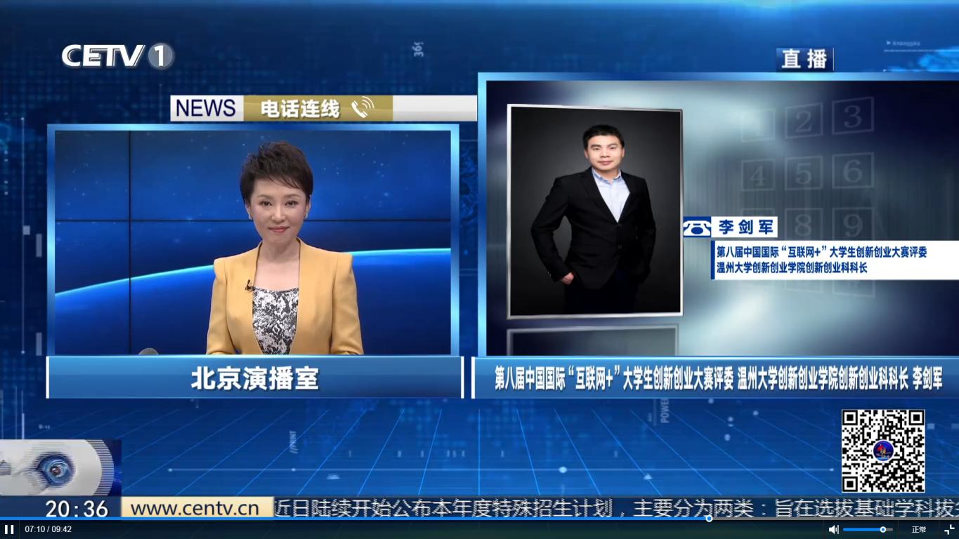 2023年4月10日,我校李剑军老师受邀电话连线中国教育电视台1频道《e视界》栏目,对刚刚落幕的第八届中国国际“互联网+”大学生创新创业大赛进行专业解读。